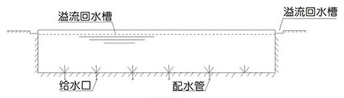 逆流式水循環(huán)方式是指泳池的全部循環(huán)水,經(jīng)設(shè)在池底的給水口或給水槽送入游泳池內(nèi),再由池壁外側(cè)的溢流槽溢流取回,進(jìn)行水處理后再送回池內(nèi)繼續(xù)使用的水流組織方式。