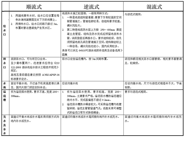 既具有逆流式池水循環(huán)方式的優(yōu)點(diǎn),還具有順流式池底回水能依靠水流沖刷并帶走池底部分沉積污物的優(yōu)點(diǎn)。這種方法在我國采用的實(shí)例雖少,但據(jù)了解效果令人滿意。